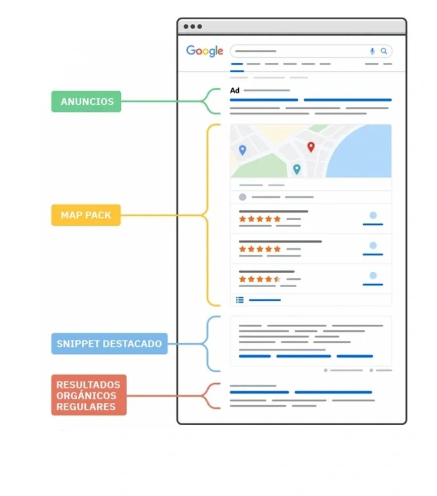 En el caso de realizar una busqueda en Google, hay 3 negocios, empresas que estan en el mapa, nos detendremos en ellos en particular.